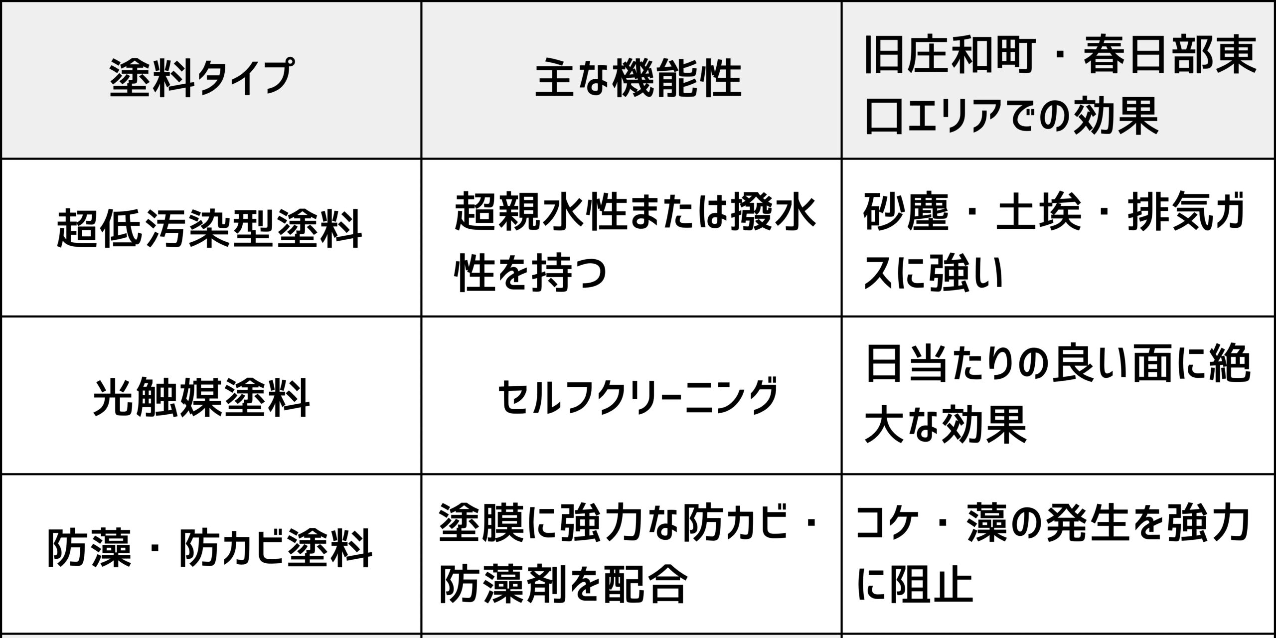外壁が汚れやすい地域だからこそ、単に「耐久性」が高いだけでなく、「防汚性」に特化した機能性塗料を選ぶことが重要です。シンミが自信を持って推奨する塗料のタイプをご紹介します。