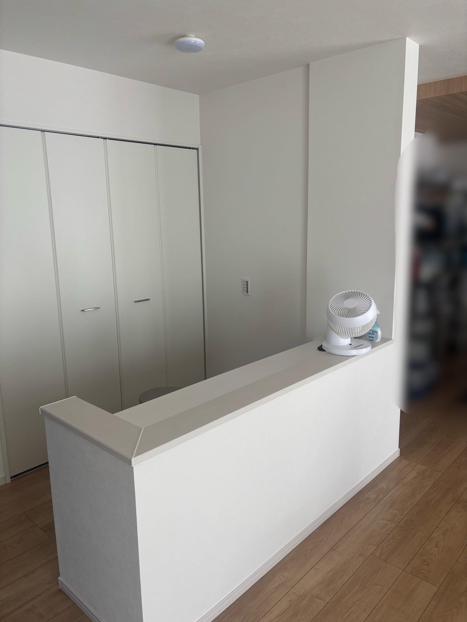 • 最適なご提案: 収納撤去後、壁面は入念に下地処理(パテ処理)を行い、違和感のないフラットな壁に整えます。さらに、干渉部だけでなく、必要に応じて壁面全体の壁紙張替えをご提案し、新しい壁として完全に生まれ変わらせます。