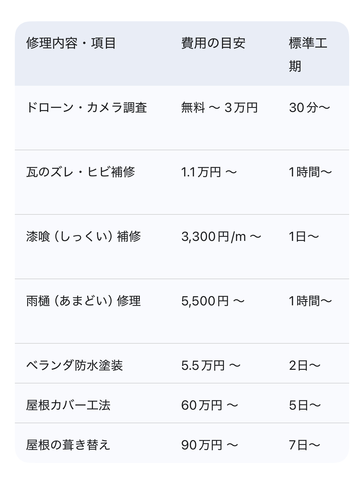 ☔️まずは予算を知りたい方へ。完全自社施工による適正価格のお見積りはこちら
