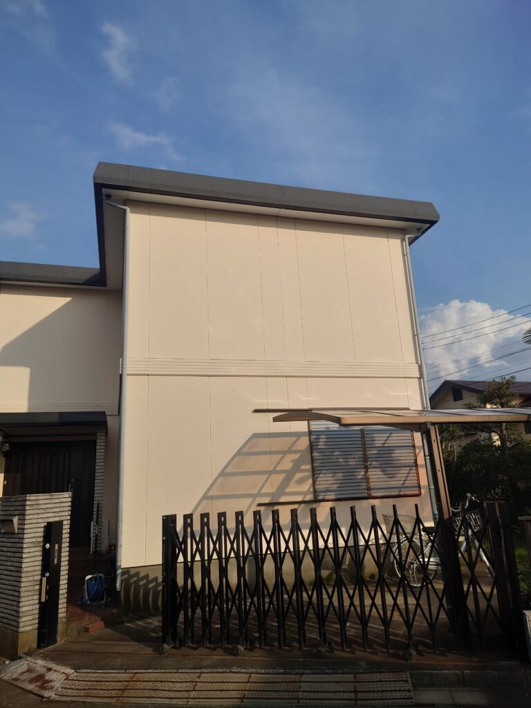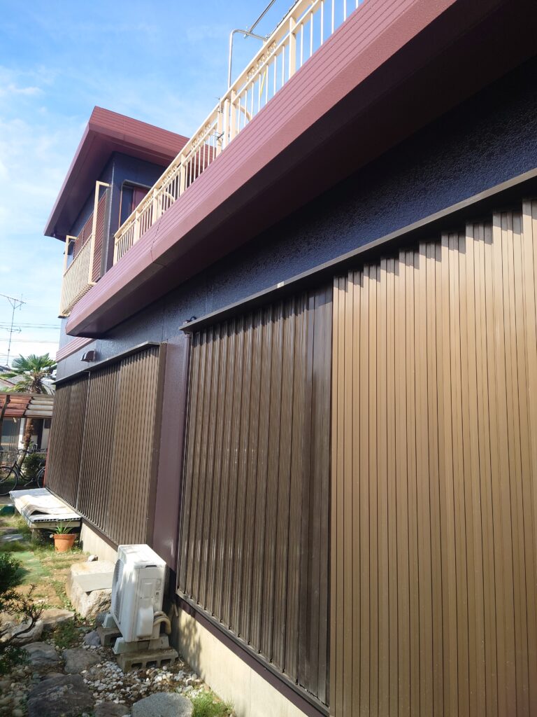 今回は、住まいの印象をガラリと塗り替える「重厚感と洗練された高級感」をテーマに、深みのあるネイビーをメインカラーに採用し、アクセントとなる幕板には全体をグッと引き締める落ち着いたブラウンを配することで、春日部の街並みに美しく映える、大人な佇まいへと一新させていただきました。